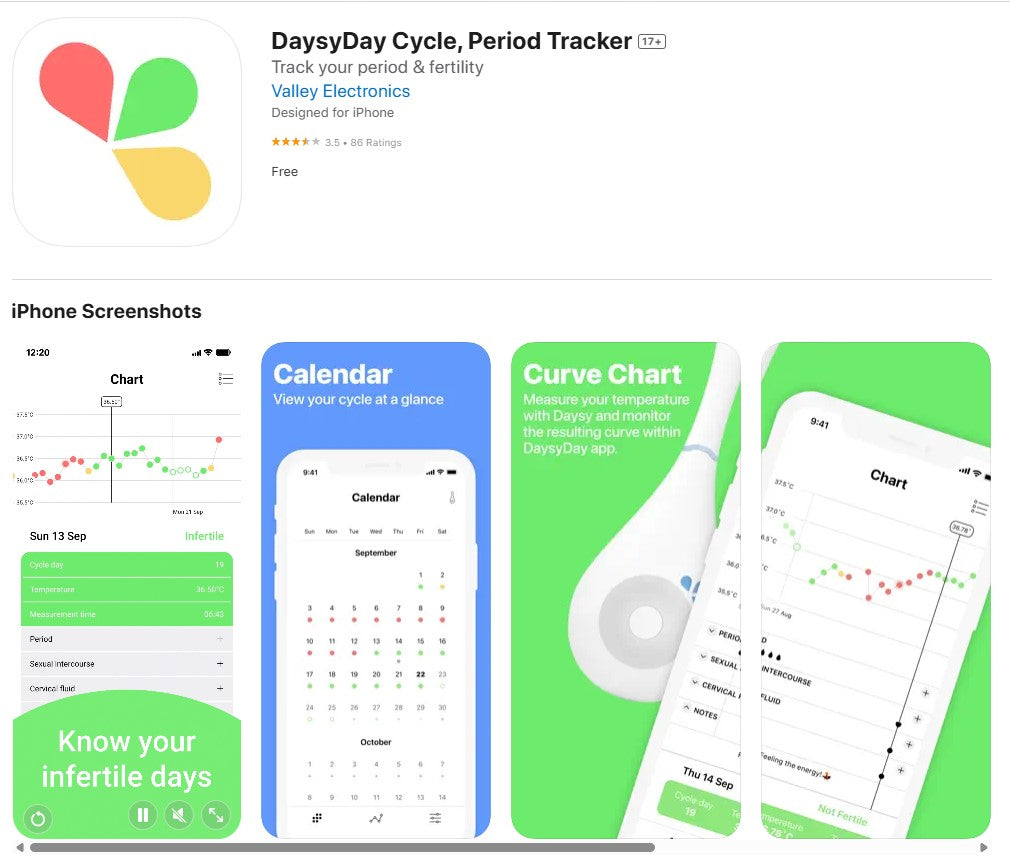 DaysyDay is a free app that, when synchronized with Daysy, displays your fertility status and provides insights into your cycle.
